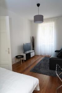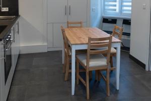 Die Unterkunft umfasst ein Schlafzimmer mit zwei Betten, Parkettboden aus Holz sowie einen Sitzbereich mit Flachbild-TV. Die Küche ist voll ausgestattet mit Herdplatte, Kühlschrank, Backofen, Mikrowelle, Kaffeemaschine, Wasserkocher, Esstisch und Kochnische zur bequemen Zubereitung von Mahlzeiten. Eine Waschmaschine sowie Bügelmöglichkeiten einschließlich Bügeleisen und Bügelbrett sind vorhanden.
