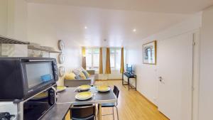 Nocleg obejmuje jeden salon oraz osobną sypialnię z dwoma łóżkami, a także łazienkę wyposażoną w prysznic i suszarkę do włosów. W pełni wyposażony aneks kuchenny zawiera piekarnik, płytę grzewczą, lodówkę, zmywarkę, mikrofalówkę, ekspres do kawy, czajnik elektryczny i toster wraz ze sprzętem kuchennym oraz stołem jadalnym na posiłki wewnątrz apartamentu. Dodatkowe udogodnienia to ręczniki i pościel, ogrzewanie, żelazko z deską do prasowania,