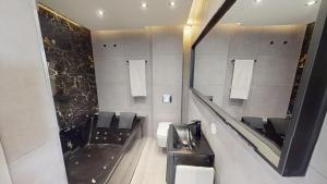 Koupelna disponuje soukromou vanou nebo sprchovým koutem doplněným o vířivku (v pokoji) a lázeňské vybavení. Hostům jsou k dispozici pantofle i bezplatné toaletní potřeby jako šampon a mýdlo na tělo, nechybí ani vysoušeč vlasů.