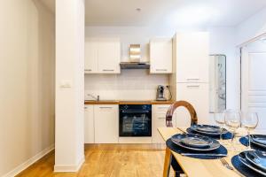 Este apartamento con una habitación cuenta con dos camas y una zona estar equipada con televisión pantalla plana y suelo parquet en todas las estancias. La cocina americana está totalmente equipada con horno, vitrocerámica, frigorífico, microondas, tostadora, cafetera, hervidor eléctrico y utensilios para mayor comodidad. En el baño hay toallas y ropa blanca disponibles, incluye inodoro y ducha sin escalones.