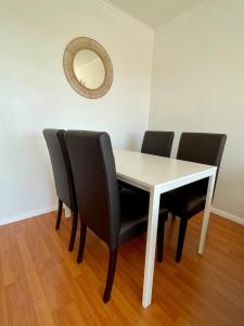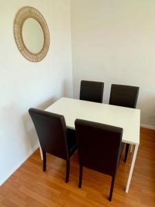 Die voll ausgestattete Küche beinhaltet moderne Geräte wie Herdplatte, Kühlschrank, Mikrowelle und Geschirrspüler sowie Küchenutensilien für die Zubereitung von Speisen. Essbereich und Terrassenmöbel laden zum Essen oder Entspannen mit Blick auf die Stadt ein. Weitere Annehmlichkeiten sind kostenlose Parkplätze vor Ort sowie ein Aufzug zu den oberen Etagen des Gebäudes, Rauchmelder gewährleisten zusätzlich Sicherheit während des Aufenthalts.